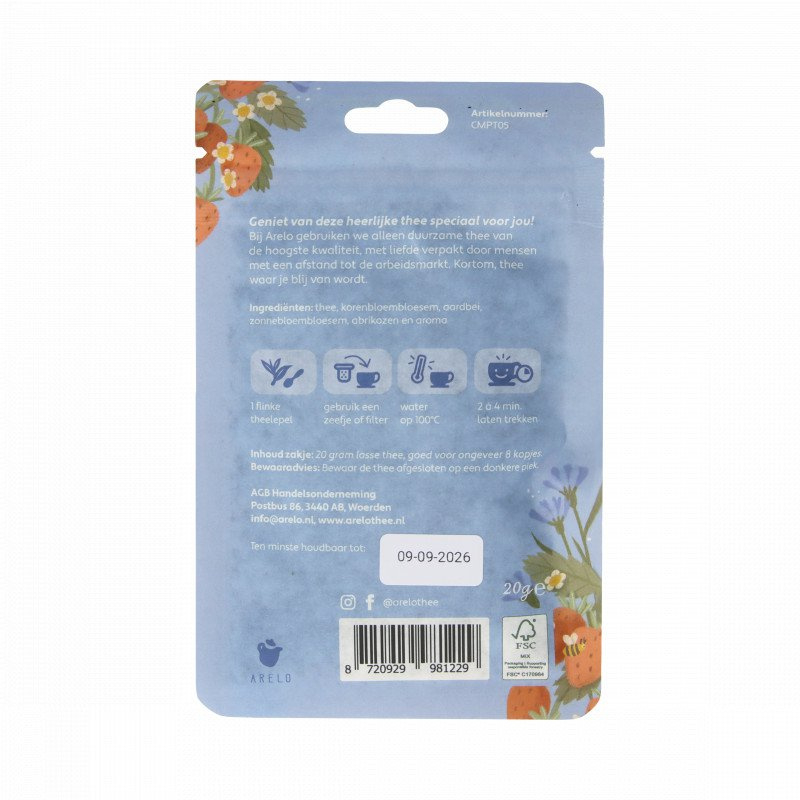 Laat iemand weten hoe geweldig hij of zij is met deze losse thee van 20 gram. Een vrolijke mix van thee, korenbloembloesem, aardbei, zonnebloembloesem en abrikoos zorgt voor een heerlijk smaakmomentje en een klein geluksmoment bij elke kop.