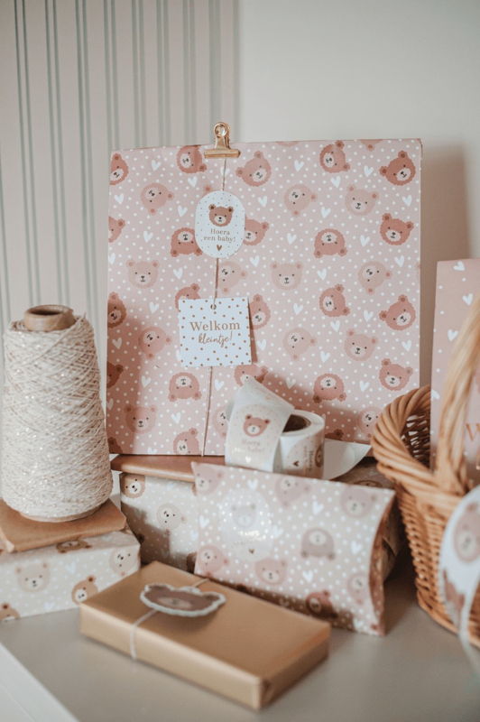Voeg wat liefde toe aan je inpakmoment met deze schattige beertjes stickers. De stickers hebben een mooie opdruk en een luxe goudfolie afwerking. Leuk voor (kraam) cadeautjes, bestellingen of om je agenda wat op te vrolijken.