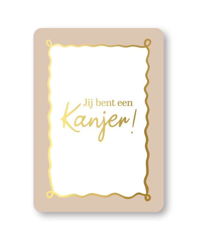 Wenskaart met de tekst “Jij bent een kanjer!”. Een mooie en persoonlijke kaart om jouw boodschap op te schrijven voor een kanjer. Specificaties: ∙ Formaat: A6 ∙ Luxe afwerking met goudfolie ∙ Mooi stevig papier ∙…