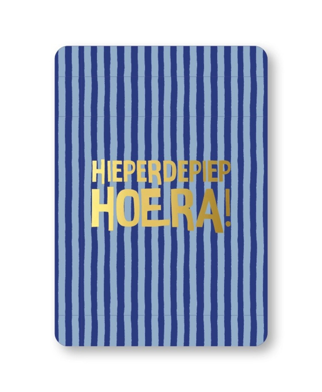 Wenskaart met de tekst “Hieperdepiep hoera!”. Een stoere en persoonlijke kaart om jouw felicitatie op te schrijven. Specificaties: ∙ Formaat: A6 ∙ Luxe afwerking met goudfolie ∙ Mooi stevig papier ∙ Geschikt om…