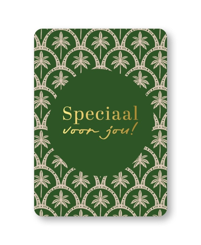 Wenskaart met de tekst “Speciaal voor jou!”. Een vrolijke en persoonlijke kaart om jouw boodschap op te schrijven. Specificaties: ∙ Formaat: A6 ∙ Luxe afwerking met goudfolie ∙ Mooi stevig papier ∙ Geschikt om…