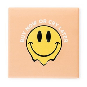 Breng kleur en persoonlijkheid in je interieur met dit leuke tegeltje met tekst “Buy now or cry later” 🛍️✨